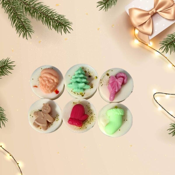1 brûleur de Noël, 3 bougies chauffe-plats, 12 fondants : 6 fondants parfums Noël, 6 fondants parfumés aléatoire de la boutique.
